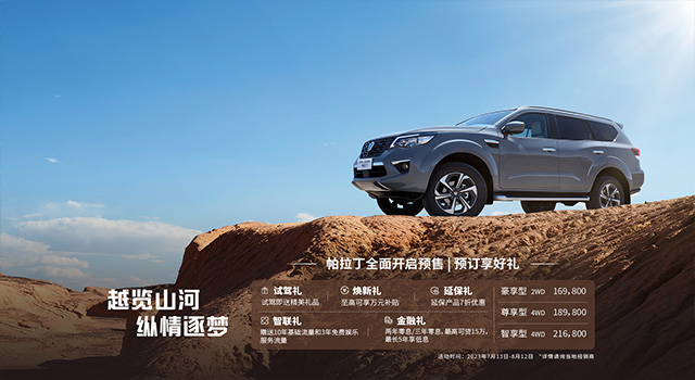 绝域苍茫,飞沙驰骋,点燃越野情怀,相约丝路明珠!8月13日,郑州日产在敦煌开启勇闯丝绸古道品鉴会,新帕拉丁带领越野爱好者们越览山河,纵情逐梦!连续三次达喀尔拉力赛完赛的新帕拉丁再次重装回归,引来万众瞩目!