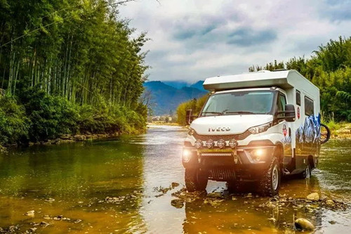 同样,之后又推出了4×4越野版底盘车型,满足更多行业使用需要,提供总重量在3.5-5.5吨的不同版本。強化后的底盘和大梁,提供四轮驱动系统更強大的越野机能与跨越能力。这也让它成为许多越野爱好者和房车爱好者的******。