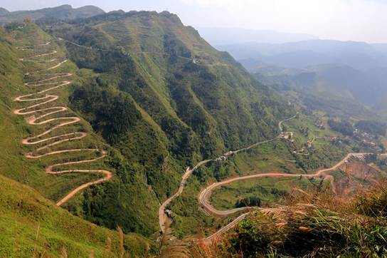 昆宜公路可谓是中国***多弯道的公路。这段公路依山梁而修,弯弯曲曲,从山脚的小坡脚到靖安哨短短7公里公路,共有68道拐,路宽仅5米。弯道之多远远超出了贵州晴隆二十四道拐